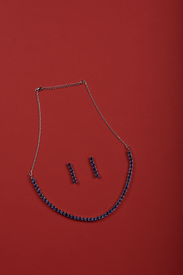 Our Heer Silver Necklace Set is made for the modern romantic. Set in 925 silver with sapphire hued stones, this one is a delicate yet powerful expression of elegance.
